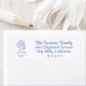 Skandinavische Line Art, blaue Kakaotasse, Rücksendeadressen-Aufkleber. Anpassen von Stil, Farbe und Größe des Schriftartes. Entworfen, um unsere Festivals Heritage Collection zu passen.