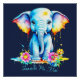 Feiern Sie das thailändische Songkran-Festival mit einem wasserfarbenen Elefanten, der mit Wasser umringt von Blume tropft.