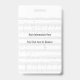 Dieses kundengerechte Ereignis-Abzeichen für Presse, Künstler backstage VIPs oder allgemeiner Zugang kennzeichnet eine Klaviertastatur gegen einen Hintergrund der alten Manuskriptblattmusik, gedruckt auf dauerhaften Blättern (Größe 2,13" x 3,38") von PVC-Plastik, der verblaßt nicht oder zerreißt. Fertigen Sie die Schablone als Durchlauf für Zugang zu Ihren Festival- oder Ereignisbereichen besonders an. Attachés mit einem Abzugsleine- oder Metallclip geliefert als optionalen Extrakosten.