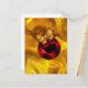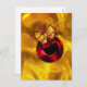 Eine helle und farbenfrohe Weihnachtspostkarte mit einem lebhaften, glänzenden, roten Bauble vorne. Die Weihnachtsdekoration hat auch einen goldenen Bogen und kleine rote Blätter. Dieser prächtige, sehr luxuriöse goldene Weihnachtsgruß wird sicher einen sehr festlichen Eindruck machen, wer es bekommt.