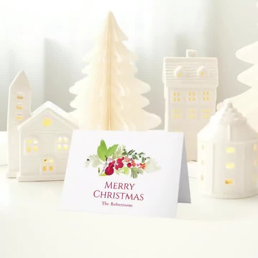 Mit dieser eleganten Weihnachtskarte in Aquarellfarbe mit roten, holzigen Beeren, üppigen grünen Blätter und zarten, immergrünen Ästen können Sie Ihren Urlaub ganz nach Ihren Wünschen genießen. Das lebendige, von der Natur inspirierte Design spiegelt die Schönheit der Saison wider und eignet sich somit perfekt für Familien, Freunde oder Kollegen. Personalisieren Sie das Innere mit Ihrer eigenen herzlichen Botschaft, um einen festlichen und unvergesslichen Gruß zu schaffen.