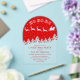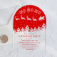 Festliche Moderne Weihnachtsfeier Weihnachten Party Santa Rote Weihnachtsfeier Akryllische Einladungen bietet eine Silhouette Weihnachtsfeiern, die über Bäume fliegen, während Schnee fällt mit Ihrer personalisierten Weihnachtsfeier Party Einladung unten. Designed by ©2024 Evco Holidays www.zazzle.com/store/evcoholidays