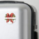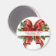 Ein Magnet mit einem festlichen Weihnachtsbogen in Rot und Gold. Umgeben von Poinsettia Blume, Kiefern und Weihnachtsdekorationen.