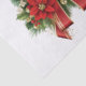 Gewebpapier mit festlichem Weihnachtsbogen in Rot und Gold. Umgeben von Poinsettia Blume, Kiefern und Weihnachtsdekorationen.