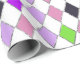 Fun Retro Diamant nahtlose Muster in lila, rosa, grün mit Imitaten silber Glitzer Rand auf weißem Hintergrund, für die Herbstfestlichkeiten Oktober / November, Weihnachtsgeschenk Verpackung, Geburtstag, Babydusche oder andere Gelegenheiten.