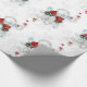 Silberschmuck und rote Glocken mit Glitzer-Wirbel auf silberfarbenem Hintergrund