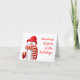 Eine festliche Urlaubskarte in hellrot-weiß mit dem niedlichsten Schneemann aller Zeiten. Einfach und nachdenklich - ideal, um Ferien mit Freude und guten Wünschen zu teilen.