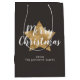 Personalisierte festliche Taupe Brown Gold Star Weihnachts Mittlere Geschenktasche.