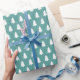 Modernes und einfaches Weihnachtspapier mit weißem Weihnachtsbaummuster auf einem agatgrünen Hintergrund, stilvolles skandinavisches Festpapier für alle Weihnachtsgeschenke. Exklusiv für Sie von Happy Dolphin Studio entworfen!