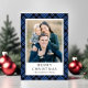 Festive Blue Plaid Photo Christmas Holiday Card.