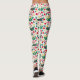 Women’s leggings covered in a cheerful Christmas pattern filled with cartoon trees, red ornaments, yellow stars, decorated branches, candy canes, and wrapped gifts. Comfortable and fun, perfect for adding a festive touch to winter outfits.