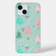 Protect your phone in holiday style with this cheerful Christmas pattern featuring pink, green, and blue trees on a mint background.