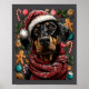 Festive Doberman With Santa Hat Snowy Winter Chris Poster