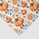 Tissue paper in a a fall-themed pattern featuring vibrant orange pumpkins intertwined with blooming chrysanthemums in warm yellow and orange hues, creating a festive harvest-inspired design