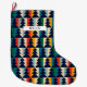 Feierliche Farbige Weihnachtsbaumen Muster Monogram Grosser Weihnachtsbaum Dieser Weihnachtsfest Strumpf zeigt ein festliches Weihnachtsmuster aus Weihnachtsbäumen auf einem bunten geometrischen Hintergrund gepaart mit schicker schwarzer Typografie für Ihren individuelle Name. Enthält das gleiche Design auf beiden Seiten des Strumpfs.