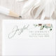 Elegant watercolor flowers design of white roses, pine cones, berries and eucalyptus greenery, with modern stylish joyful script. Festive palettes of red, sage green, and white, Great personalized return address labels for holiday wedding, Christmas party, and family season's greeting in winter.