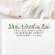 This festive return address label features watercolor holly, mistletoe, and pine foliage in red and green..