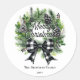 Festive Holiday Wreath BW Bow Merry Christmas Runder Aufkleber