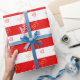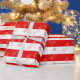 Festive Joy Heart Pattern auf gestreiftem Rot und Geschenkpapier