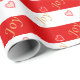 Fesselnde Herzmuster auf gestreiften roten und weißen Hintergrund Geschenkpapier.