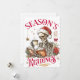 Ein festliches und fröhliches Weihnachtsdesign zeigt ein Skelett, das eine Santa-Mütze trägt, ein Buch liest und eine dampfende Tasse Kaffee hält. Um ihn herum sind Weihnachtssterne, Stechpalmenbeeren und Kiefernzweige. Der farbenfrohe Text lautet: "Festive Lektüre". Dieses Design ist auf einer Vielzahl von Produkten erhältlich und ist somit das perfekte Geschenk für Bücherliebhaber.