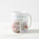 Chic festive modern holiday mug features "Merry Little Christmas" in teal baby blue script typography, 3 of your favorite photos with little snowflakes.