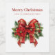 Festive Red and Gold Christmas Bow Weinetikett
