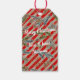 Festive Red Stripe Pine Spruce Cones Kraft Holiday Geschenkanhänger