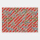 Festive Red Stripe Pine Spruce Cones Kraft Holiday Geschenkpapier Set