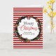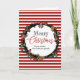 Festive Red Stripes Holly Wreath Frohe Weihnachten Karte