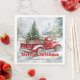 Festive red truck Christmas scene rustic table Serviette