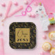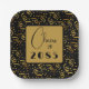 Alles Gute zum neuen Jahr! Teller für ein Silvesterabend-Party, schwarz mit Goldschläuchen und Konfetti. Die Hintergrundfarbe lässt sich leicht anpassen, sodass die Teller für jede Feier verwendet werden können. Die quadratischen oder runden Formen sind in zwei Größen erhältlich.