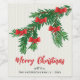 Festive Watercolor Greenery Red Bow Christmas Weinetikett