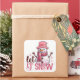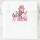 Niedlicher Weihnachtssticker Snowman in einem rosa Hut und Schal. Die Wörter "Lass es schneien"
