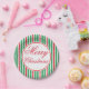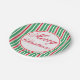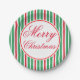 Helle, festliche, cremefarbene Streifen zieren diese fröhlichen Weihnachtszeitung-Teller. Diese Teller sind ideal für Weihnachten, Weihnachts-Abendessen, ein Weihnachtsfest, Feiertag, Party, Open House, Cookie-Austausch, Cookie-Swap, Schule, Kirche, etc... Das Design ist aus der Originalkunst.