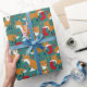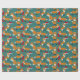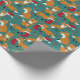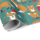 Lassen Sie sich mit diesem niedlichen Packpapier Weihnachtsgeschenke und Feiertagssjubiläum schmücken, das anmutig festliche Füchse mit Weihnachtsmannmützen und Weihnachtskränzen, Ziergegenständen und Weihnachtsfeiern zeigt. Die Illustrationen sind Set vor einem dunklen aquamarinen Hintergrund und mit heiligen Blätter und Beeren, Baumschmuck und weißen Schneeflocken Punkten betont.