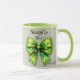 Festliche grüne Furry Bow-Lights Naughty oder schöne Tasse. Diese Tasse im Ferienthema präsentiert einen verschwommenen grünen Bogen, der in Mini-Lampen eingewickelt ist und eine skurrile Touch verleiht. Die Phrase "Naughty oder Nice" wird vorgestellt, perfekt für einen spielerischen Saisonauftritt. Auch unter dem niedlichen Furry-Bogen ist ein Raum, der mit Ihrem Namen angepasst werden kann, sodass es ein einzigartiges festliches Accessoire oder Weihnachtsgeschenk!