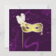 Elegante Maskerade-Ball-/Karnevals-Party Einladung erfolgt in einem reichen Lila, mit Grafiken des Wirbel und des Scheins wie Entwürfe, auf dem Hintergrund. Grafiken von zwei verzierten Gesichtsmasken verzieren die links Seite der Einladung und goldtone grafische Textlesungsmaskerade wird auf der linken Seite des Textbereichs gesetzt. Text in dunklem Lila ist völlig kundengerecht, damit Sie für Ihr Ereignis personifizieren. Groß für Maskerade-Partys, Halloween, Karneval und Karneval.