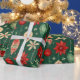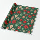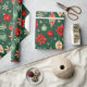 Weihnachtsschmuck und Blume in einem festlichen Urlaubsmuster in den Farben Grün, Rot und Creme