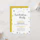 Diese trendy Einladung ist ideal, einen Abschluss von der Highschool, von der Uni oder von der Universität stolz zu feiern. Sie kennzeichnet festliche Punkte herum im Grau und im Gelb. Der KursivSchriftart ist modern dennoch elegant. Dieser Unisexentwurf ist perfekt, diesen wichtigen Meilenstein zu feiern.