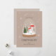 Festliche Line Kunst der Schneeglobe mit fallendem Schnee, Bäumen und Pilzen. Festlicher Schriftart "Weihnachtsfreude" und eine individuelle Nachricht auf der Rückseite.