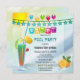 Party Einladung mit einem Cocktail mit festlichen Ballons und Orange im Aquarellbild. Diese Einladung funktioniert sowohl für Erwachsene als auch für Familien und Kinder.