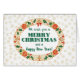 Eine Weihnachtskarte mit einem Weihnachtskranz von Holly, Ivy, Poinsettias, Fir Cones, Weihnachtsfeiern und einem passenden roten Bogen, in Goldeffekt umrissen, mit goldenen Schneeflocken auf weißem Hintergrund. Eine individuelle Vorderkarte in dieser Serie ist ebenfalls erhältlich.