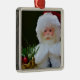 Das festliche Weihnachtsschmuck mit einer Steinglocke auf seiner Weihnachtsmannmütze hält einen Haufen Heiligen.
