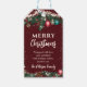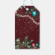 Dieses wunderschön gestaltete Weihnachtsgeschenk-Anhänger besticht durch eine festliche Kieferngarage mit glitzernden Lichtern, Ziergegenständen und Pinecones vor einem dunkelroten bordeauxfarbenen Hintergrund. Personalisieren Sie das Tag mit Ihrem Familiennamen und fügen Sie eine herzliche Nachricht von Liebe und Urlaubswünsche hinzu. Ideal, um Ihren Weihnachtsgeschenken und dem Weihnachtsgeschenk eine personalisierte Touch hinzuzufügen.
