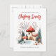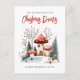 Festliche Winter Wonderland Weihnachten Postkarteneinladung. Für das Ehepaar oder die Familie, die ein Weihnachtsgetränk Party halten. Das Design zeichnet sich durch eine niedliche Aquarellwaldszene aus. Einfach auf der Vorder- und Rückseite mit Ihrer Textauswahl personalisiert.