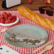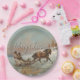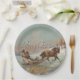 Dekorative Papiertafel mit Enders schneebedeckter Schlittenfahrszene Weihnachtsbesuch. Personalisieren Sie mit frohen Weihnachten und Ihrem Familiennamen zu einem festlichen Urlaubstisch.