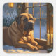 Eine herzliche Urlaubsszene mit einem Hund, der friedlich neben einem Fenster sitzt, umgeben von leuchtenden Weihnachtslichtern. Dieses gemütliche und festliche Design erweckt den Geist der Saison und verleiht jedem Raum Wärme und Charme. Ideal für Hundefreunde und für Liebhaber der Dekoration.