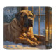 Eine herzliche Urlaubsszene mit einem Hund, der friedlich neben einem Fenster sitzt, umgeben von leuchtenden Weihnachtslichtern. Dieses gemütliche und festliche Design erweckt den Geist der Saison und verleiht jedem Raum Wärme und Charme. Ideal für Hundefreunde und für Liebhaber der Dekoration.