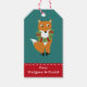 Fügen Sie die perfekte personalisierte Touch zu Weihnachtsgeschenken mit diesem Geschenktag hinzu. Es zeigt eine niedliche Abbildung eines festlichen Fuchses mit einem Weihnachtskranz-Set vor einem aquamarinen Hintergrund mit weißen Schneeflockenpunkten. Fügen Sie Ihren eigenen Text in weißer Schrift unterhalb der Grafik hinzu.